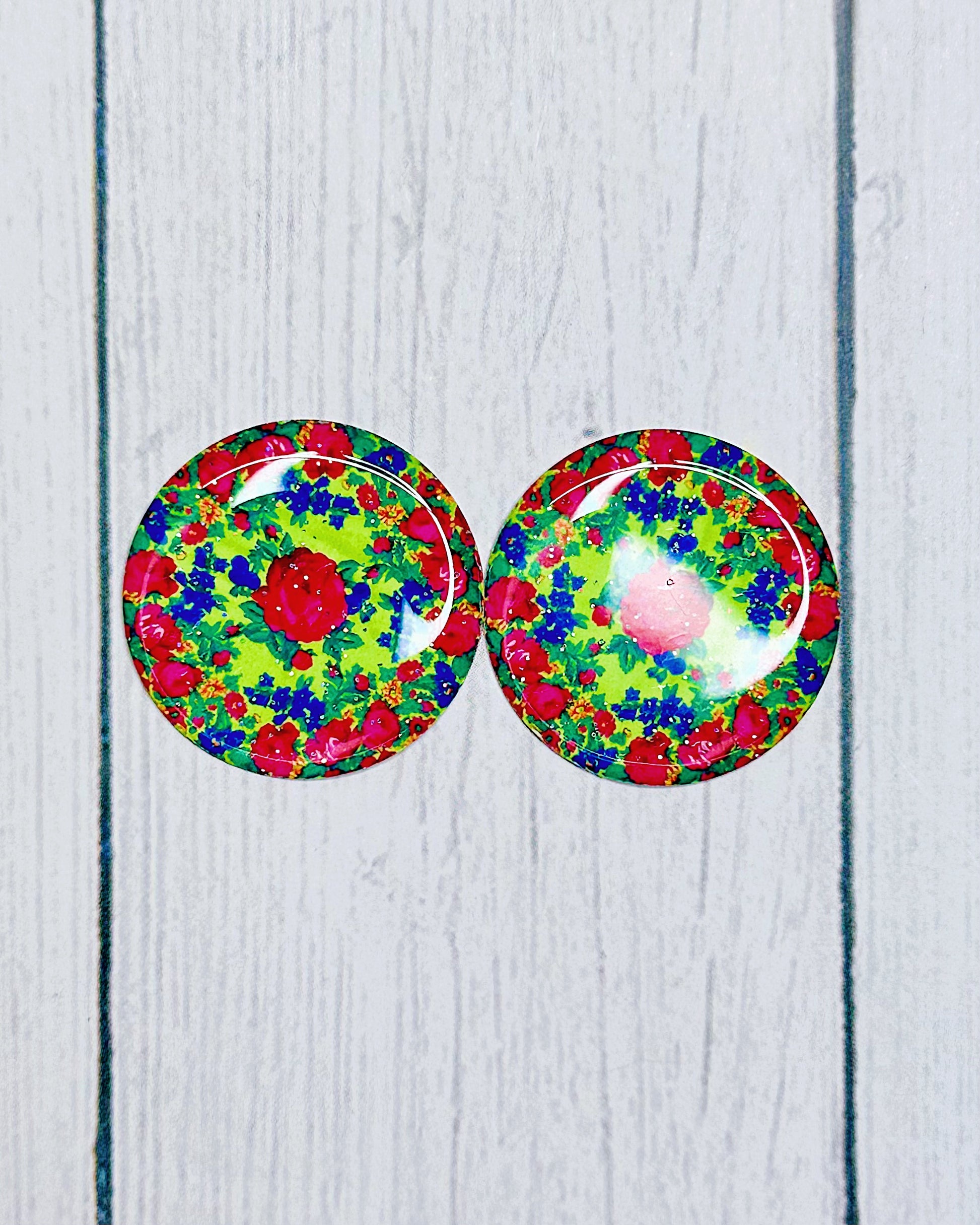 Add bold style and vibrant detail to your beadwork with our Kokum Pattern 1" Round Cabs. Each set includes a matching pair (2 cabs) for perfectly coordinated designs, available individually or as a complete collection of 7 pairs. Made from durable epoxy, these cabochons come in your choice of a sleek glossy or eye-catching glitter finish to match any aesthetic. Ideal for jewelry making and craft projects, they bring lasting shine and unique flair to every creation.