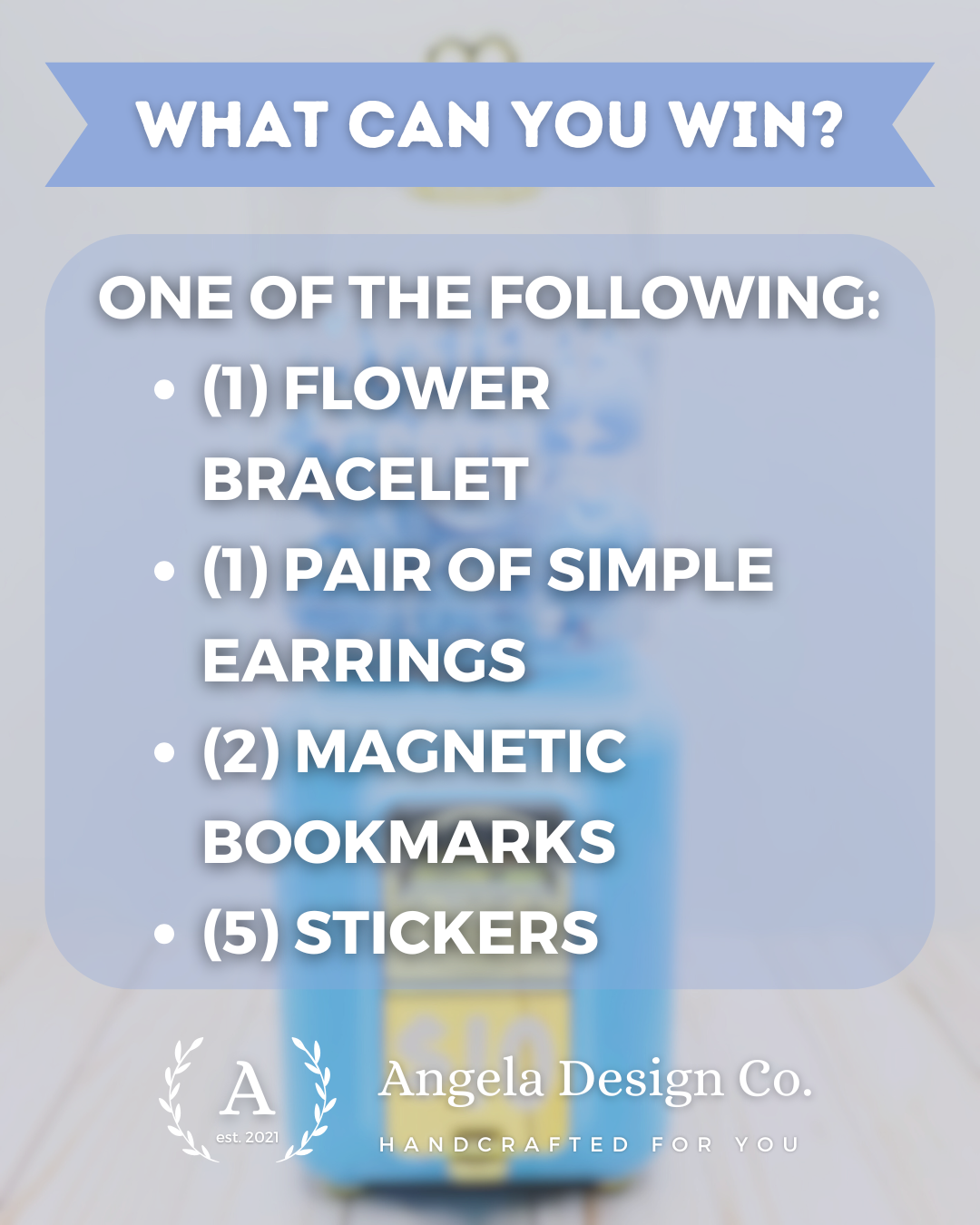 Unlock a surprise with our Mystery Spin machine! Win one of the following fun items: a stylish flower bracelet, one pair of simple earrings, two magnetic bookmarks, or a collection of five quirky stickers. What will you get? Spin to find out!