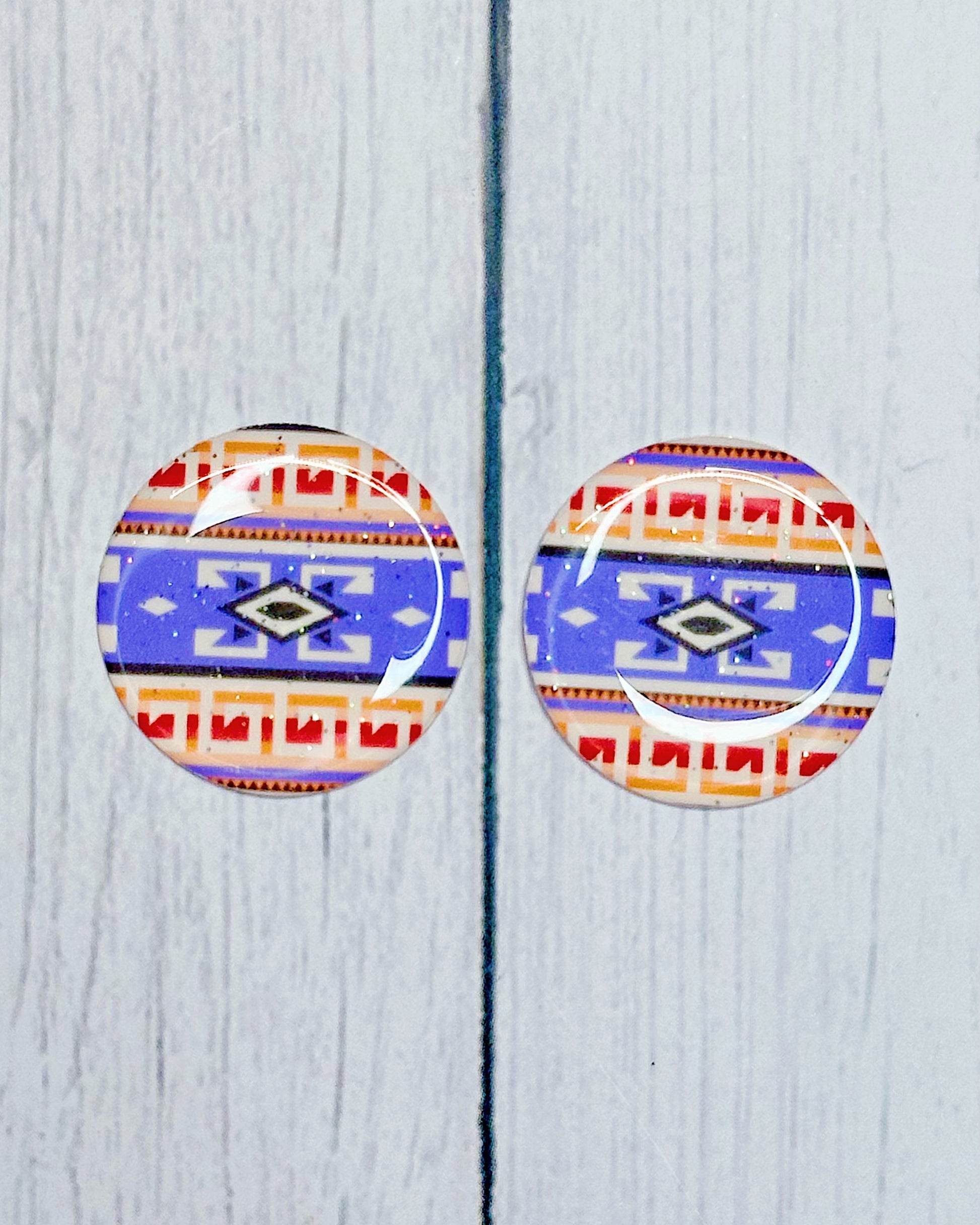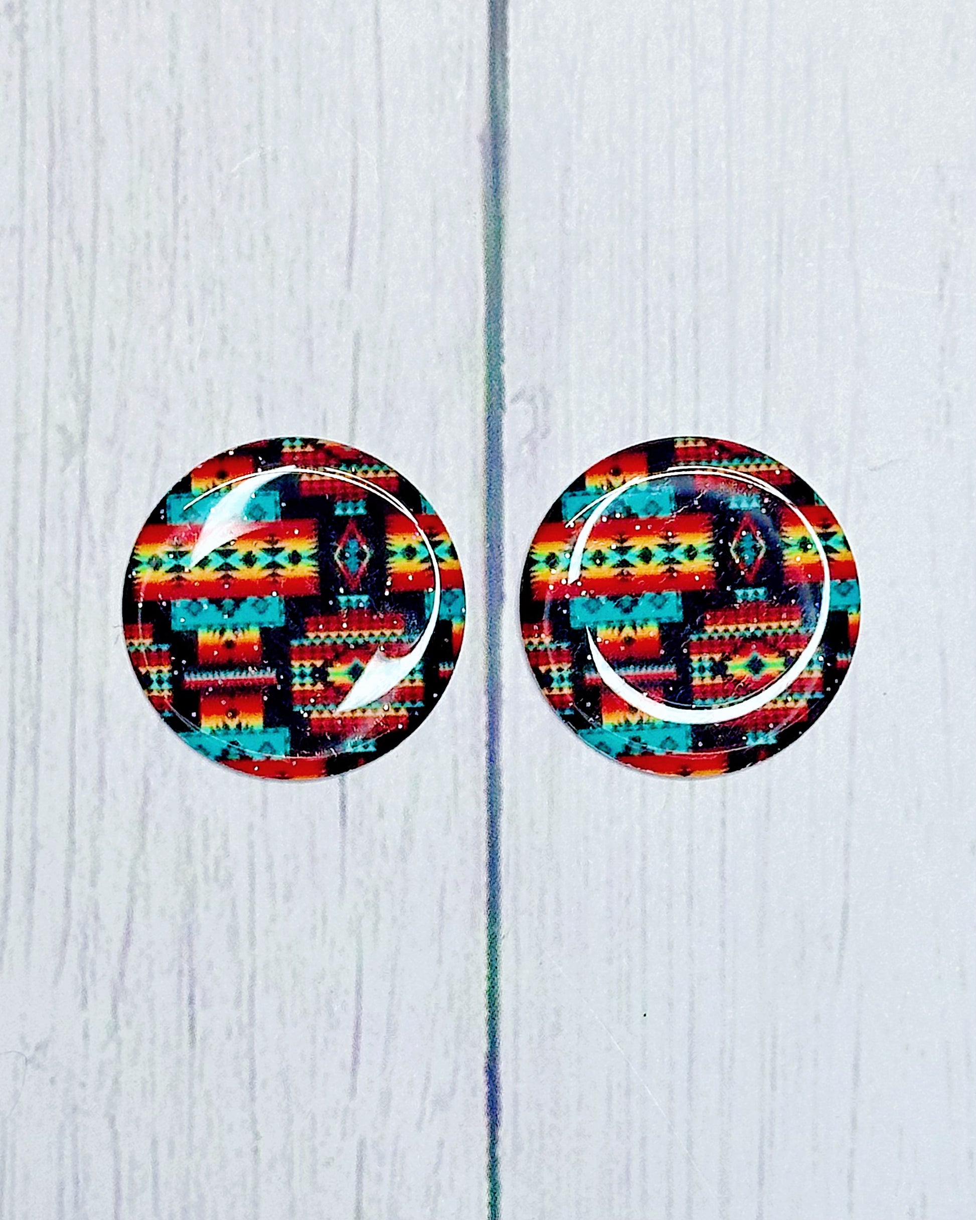 Add bold style and vibrant detail to your beadwork with our Native Pattern 1" Round Cabs. Each set includes a matching pair (2 cabs) for perfectly coordinated designs, available individually or as a complete collection of 7 pairs. Made from durable epoxy, these cabochons come in your choice of a sleek glossy or eye-catching glitter finish to match any aesthetic. Ideal for jewelry making and craft projects, they bring lasting shine and unique flair to every creation.