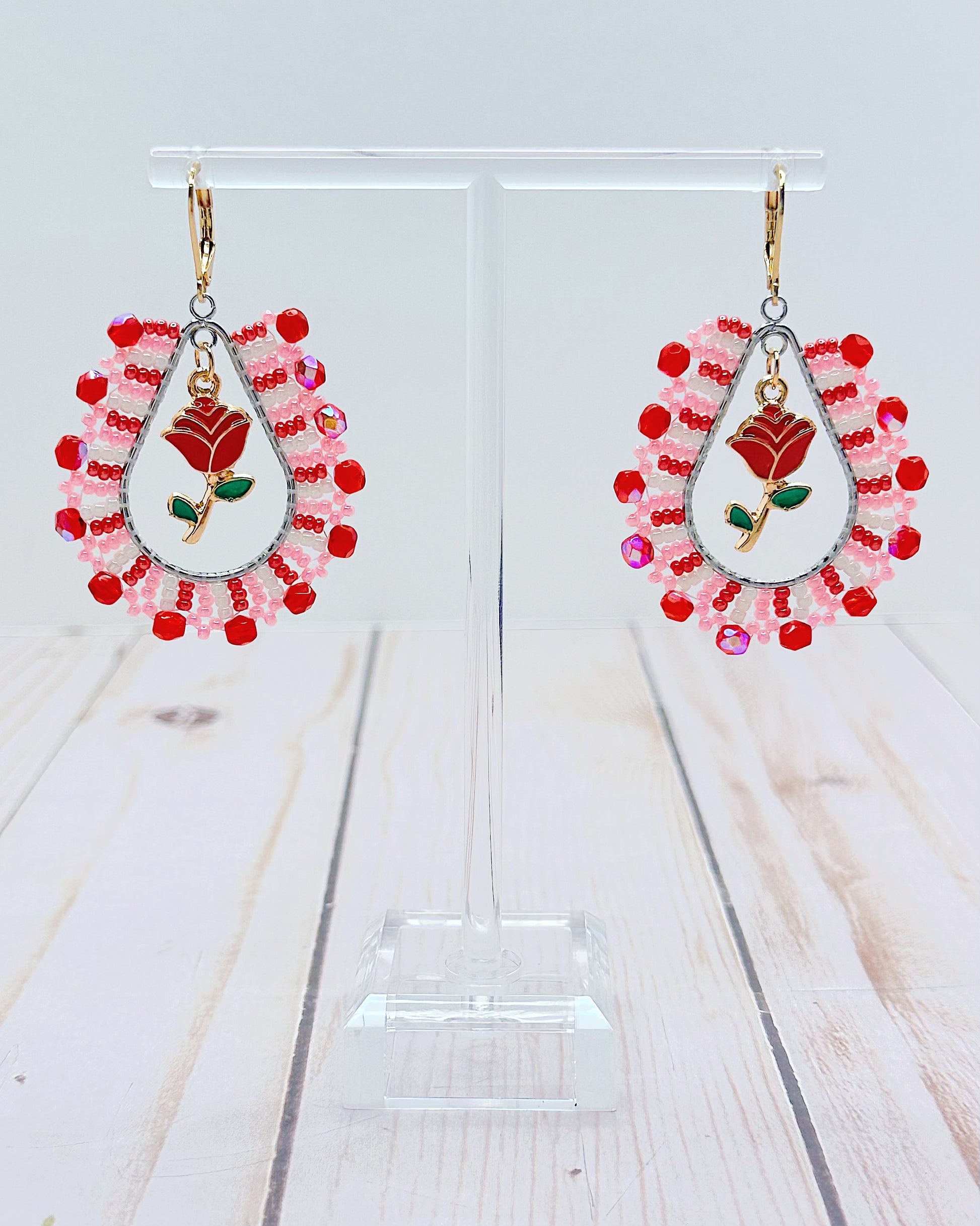 Pastel Pink & Red Rose Earrings